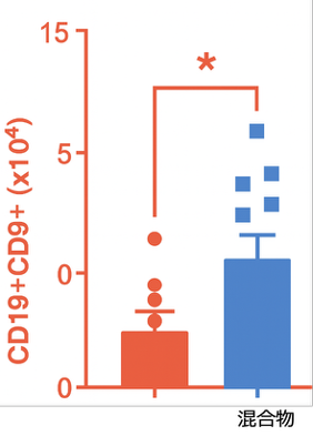小麦アレルギーを誘発したイヌに対して、コントロール食またはガラクトオリゴ糖とイヌリンを混合した飼料を与えました。その結果、腸管リンパ節に存在する特定のB細胞が増加しました。これはガラクトオリゴ糖とイヌリンの組み合わせが免疫機能を変化することを示唆しています。