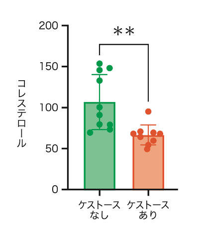 ケストースの摂取によって血中コレステロール濃度が減少しました。