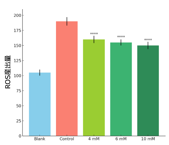 ヒトケラチノサイトにケストースを加えることでROSの蓄積が著しく減少した。