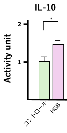 HGB摂取群では、回腸におけるIL-10 mRNAの発現が有意に増加しましたp < 0.05。