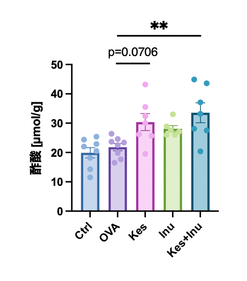 Kes+Inu群でのみ、酢酸レベルが有意に上昇しました